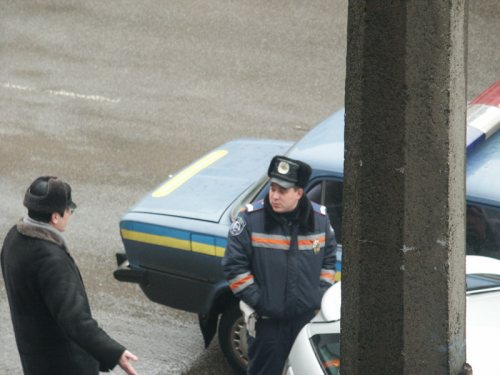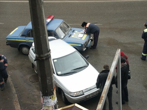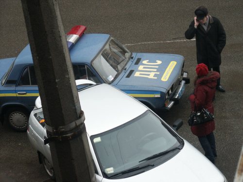 Вот как она описала данное событие: автомобиль ВАЗ, сдавал назад от магазина «Модильяни». В этот момент подъехала машина ДПС, и заблокировала выезд ВАЗа. В результате произошло столкновение: задний бампер ВАЗа, ударил в правую переднюю дверь машины ДПС, правда, не сильно. работники ДПС кому-то позвонили, после чего приехала еще одна машина ДПС. Случайный прохожий пытался также это событие снять на цифровое фото, но сотрудники из пострадавшей машины ДПС, пытались воспрепятствовать этому.