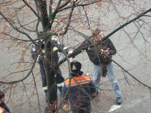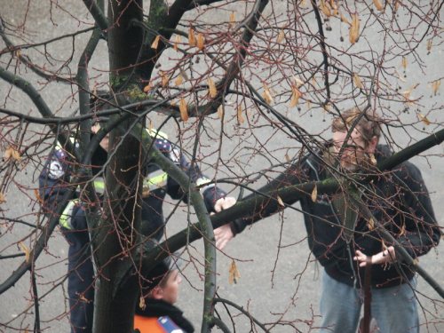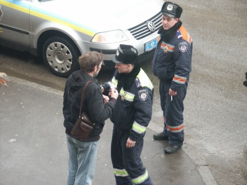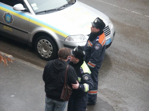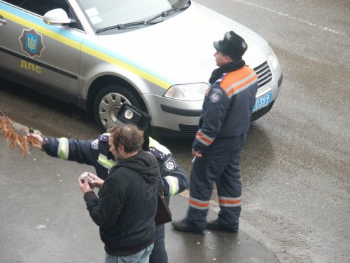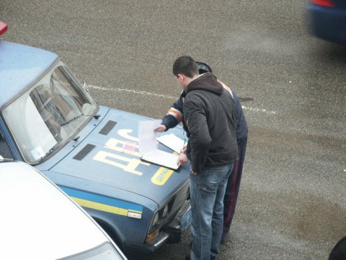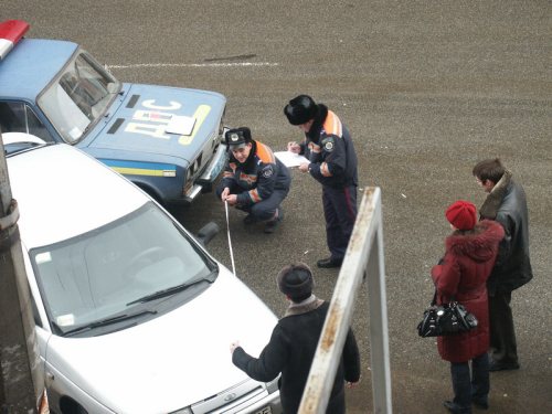 Позже прибыл еще один автомобиль ДПС, из которого вышли сотрудники патрульной службы и пытались объяснить человеку, что это именно он был не прав (это было слышно из окна квартиры). Затем товарищи из ДПС уехали, человека оставили в покое. После всего составили протокол. Еще позже остановили подряд две случайные машины, водители которых расписались в протоколе в качестве свидетелей и были отпущены. Дальше работники ДПС сделали замеры с рулеткой. В протоколе расписался водитель ВАЗа.