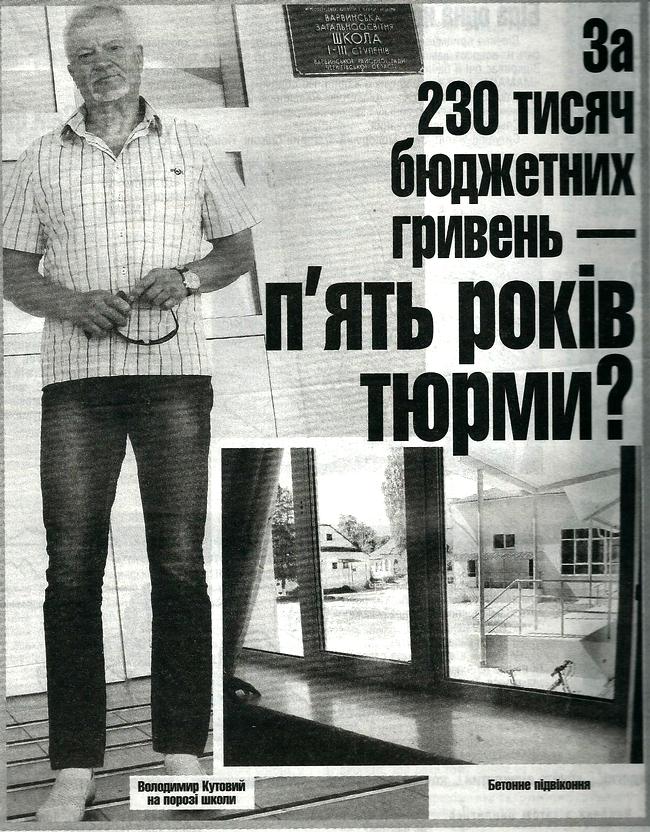 14 квітня Варвинський районний суд оголосив вирок 61-річному Володимиру Кутовому, начальнику відділу освіти Варвинської районної державної адміністрації, — п’ять років ув’язнення. З позбавленням права обіймати посади, пов’язані з виконанням організаційно-розпорядчих функцій в установах та організаціях будь-якої форми власності строком на два роки. За повідомленням прес-служби облпрокуратури, за те, що «власноручно підписав та скріпив печаткою документи, якими підтверджено виконання будівельних робіт по реконструкції загальноосвітньої школи, що фактично не виконувалися».