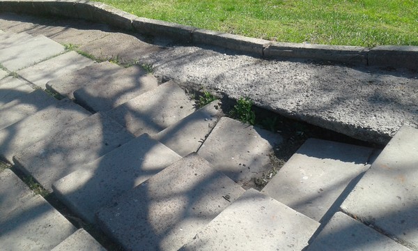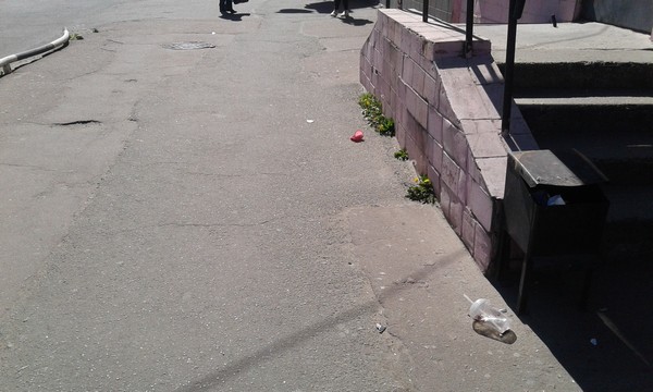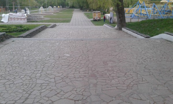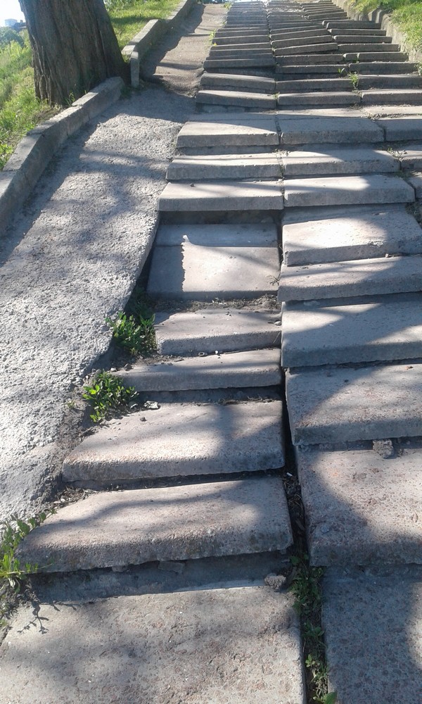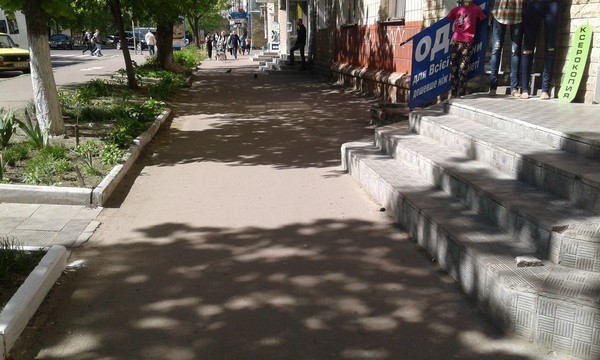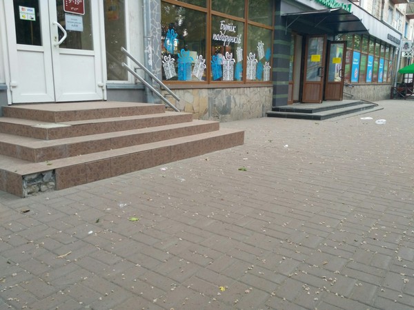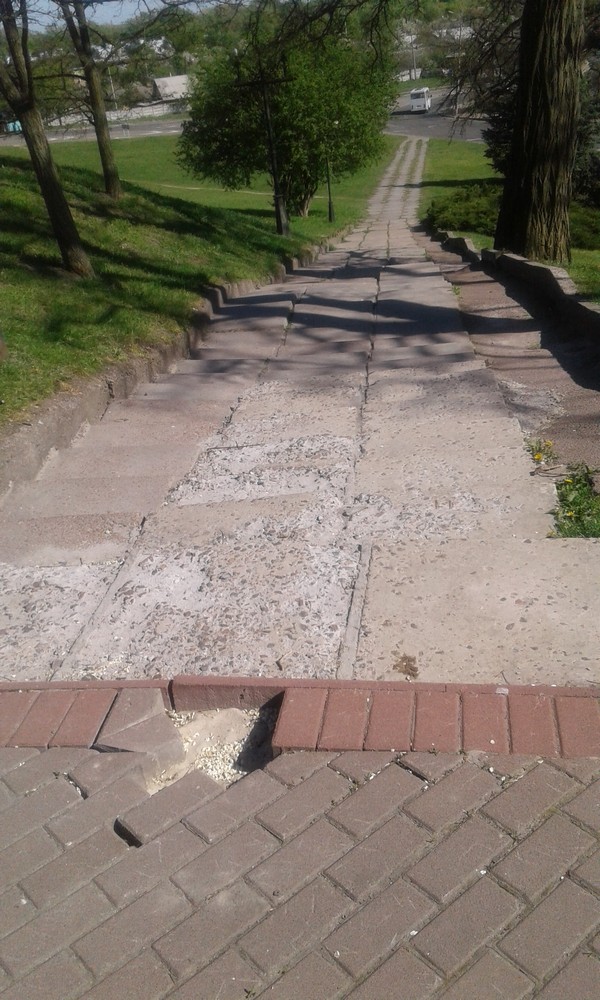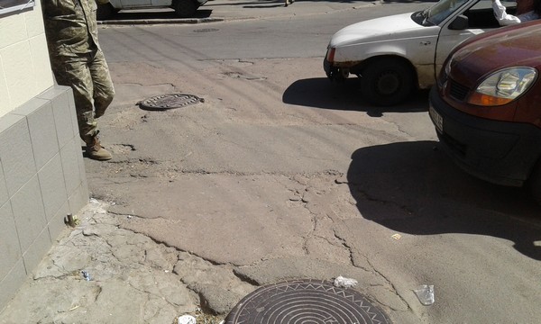 Спочатку про центральні вулиці писати взагалі не хотілось. Ну що там може бути не так? Це ж центр міста – там майже цілодобове чергування прибиральників, двірників. Так, Центр прибраний, але одне все-таки відмічу. Ями. Сьогодні по місту тільки і видно ремонтні роботи, сподіваюсь і до цього місця «руки відповідних служб доберуться» (сходи біля Катерининського храму, тут буває багато містян і туристів).