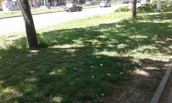 Проінспектувати вирішено було і Ялівщину. Вийшовши на зупинці біля ринку Нива, рухалась по прямій в бік лісопарку. Нова зупинка, новий асфальт. Все чисто і красиво, але погляд падає на клумбу і дерева, де замість квітів ростуть недопалки. І протягом всього шляху на траві то і діло траплялось сміття, скрізь. Ви 100% бачили таку картину: на тротуарі нібито чисто, але біля бордюрів ціла зграя дбайливо заметаних туди недопалків чи в тріщинах на асфальті тощо.