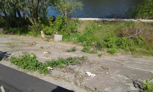 Спустилась до берега і випадково налякала сім’ю качок, яка саме відпочивала в річкових заростях і серед купи бляшанок і сміття. Стало сумно, от так ми втручаємось у природнє середовище і життя тварин. Тут святкували «травневі свята», сюди ще не раз повернуться на пікніки і прогулянки. Але замість приємних краєвидів, ми скоро відпочиватимемо в урбаністичному жахітті, серед гір сміття.