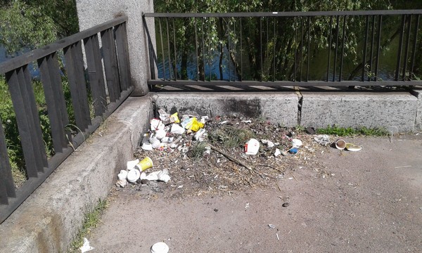 присутність урн не нівелює сміття, яке валяється просто на дорозі.