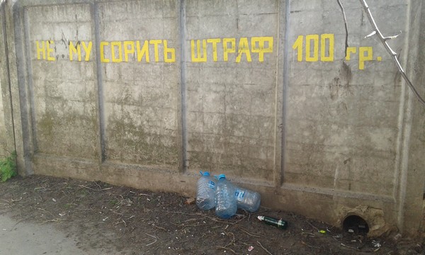 У провулку, який веде до річкового порту напис: не мусорить – штраф 100 грн. І відразу під цим парканом пуста пластмасова тара і пляшка з-під пива. Натюрморт виглядав як знущання.