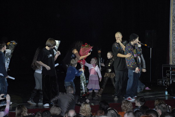 Концерт задержался почти на 40 минут — но зрители не обиделись, и разогревать их не пришлось — зал подхватил волну с первой же песни. Подпевали больше с балконов — а азартнее и искреннее всех в переклички включались дети — и они же ручейками стекались на сцену с букетами. На провокационные вопросы Потапа о том, какие именно из выдающихся Настиных достоинств нравятся им больше всего, юные зрители бесхитростно отвечали: «Прическа», «Туфли»… А одна малышка поинтересовалась: «Настя, а что ты кушала, что такая выросла?»