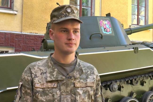 «Эти смелые ребята — Вячеслав Подокопный из Хмельницкого и Андрей Харченко из Бахмача Черниговской области (участник АТО в составе героической 72-й бригады), которые сегодня учатся на факультете ракетных войск и артиллерии».