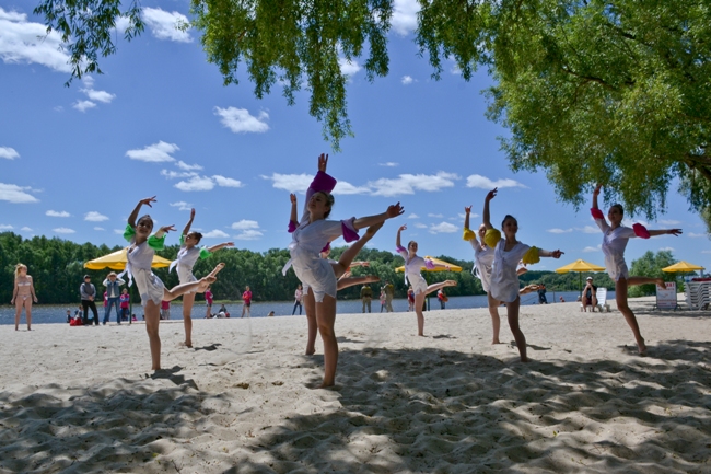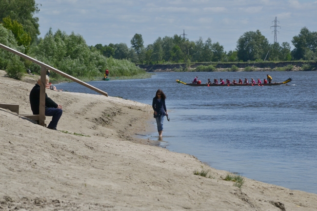Головний чернігівський міський пляж "Золотий берег" офіційно відкрито. Як це зазвичай у нас — за участі танцювальних колективів і оркестру, ракетомоделістів і картів, драганботів та туристичних і спортивних гуртків. Учасники відкриття і були, мабуть, головними учасниками святкувань, адже погода не дуже радувала — на сонці спекотно, але в тіні лише градусів 15-18. Та й вода холодна, майже ніхто не насмілювався купатися.