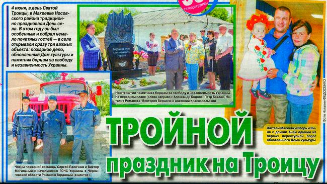 4 июня, в день Святой Троицы, в Макеевке Носовского района традиционно праздновали День села. В этом году он был особенным и собрал немало почетных гостей — в селе открывали сразу три важных объекта: пожарное депо, обновленный Дом культуры и памятник борцам за свободу и независимость Украины.