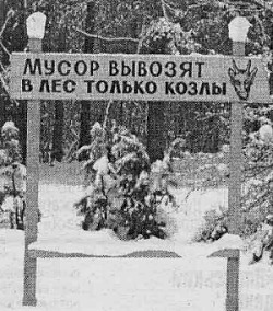 Поверталися з відрядження з Моложави Городнянського району. На в'їзді в Городню око зачепила табличка на узбіччі. «Мусор вывозят в лес только козлы»,— написано.