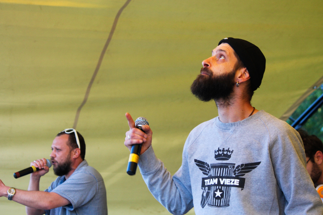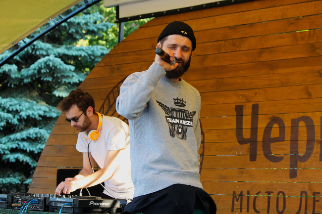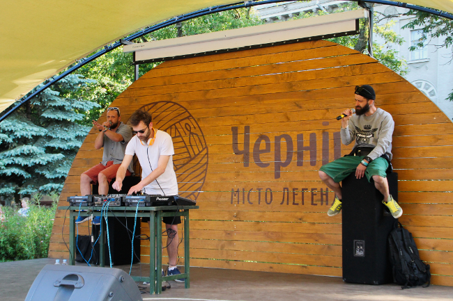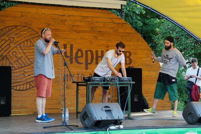 А тем временем, на Зеленую сцену вышла легендарная группа из Киева «Raggasapiens». Трое, совсем не старых ребят. Один занял место за музыкальным пультом, а двое уселись на музыкальные колонки и болтая ногами выдали свой хит «Палає сонце». Ребята меняли свой репертуар по ходу концерта, подстраивались под реакцию публики. По словам самих исполнителей, их творчество кого-то удивит, кого-то шокирует, а кому-то и понравится. И судя по реакции зрителей, им удалось раскачать аудиторию своей неповторимой манерой исполнения.