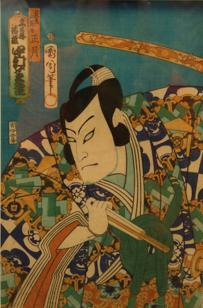 На выставке экспонируются около 70 укие-э представителей школы Утаґава. Больше всего представлено работ Утагава Куниеси (1798 - 1861), который считается последним великим мастером укие-э и одним из самых талантливых авторов образов актеров театра кабуки.