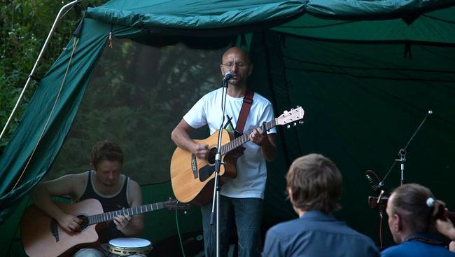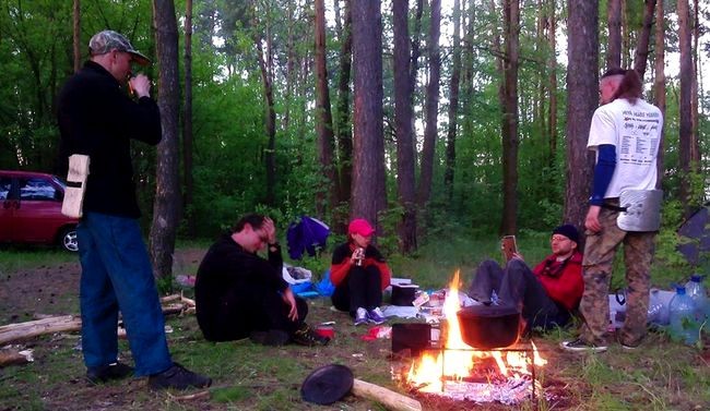 В определенный день они собираются в назначенном месте, садятся в автобус и вместе с инструкторами едут к месту, откуда будет проходить сплав по реке. Туда же подъезжаю на микроавтобусе я с лодками. Если это вечер пятницы, то туристы разбивают палаточный городок, разжигают костер, готовят ужин, играют и поют под гитару, общаются и т.п.