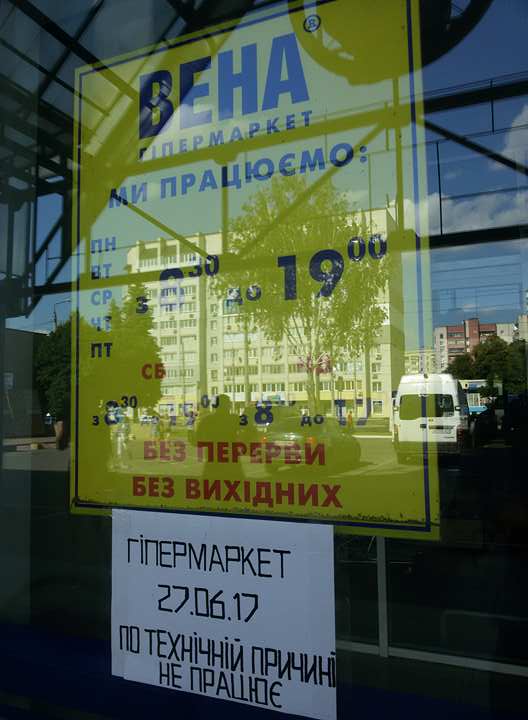 Как сообщил наш корреспондент, который прибыл к "ВЕНЕ" - действительно висит табличка закрыто, не работает сама "ВЕНА" и ее магазин "Дискаунт", в Голливуде около 17.00 начали проблемы у магазина техники Comfy. Персонал выключил компьютеры. Продажи только по наличному расчету. Безнал не будет работать ближайшие два дня. Также на территоррии "Голивуда" не работают терминалы "Приватбанка".