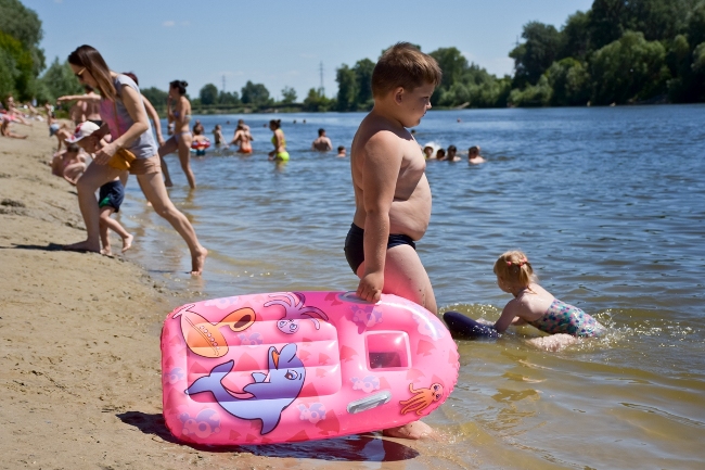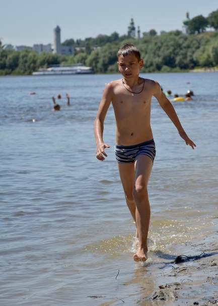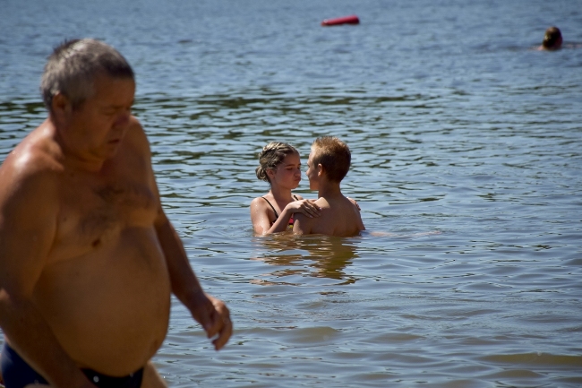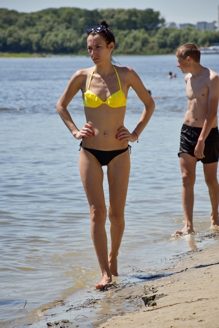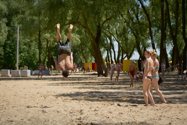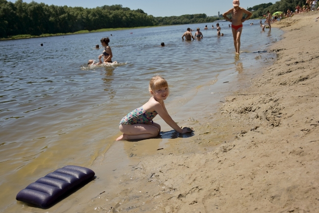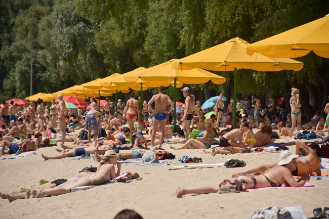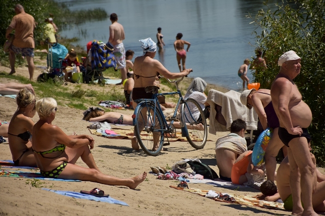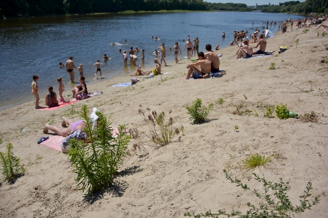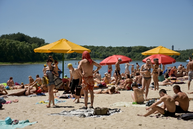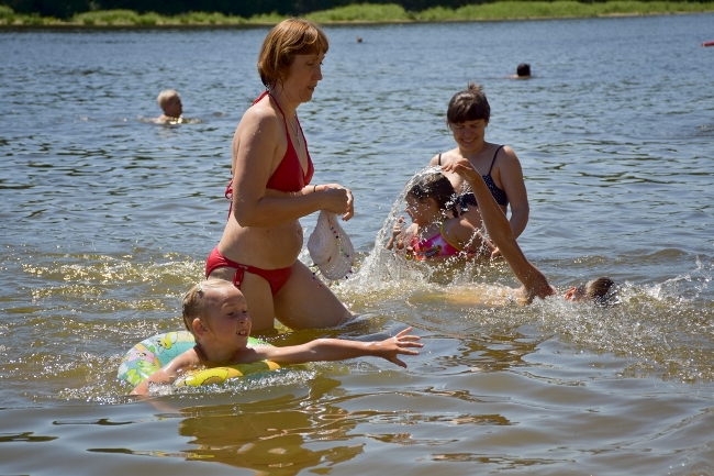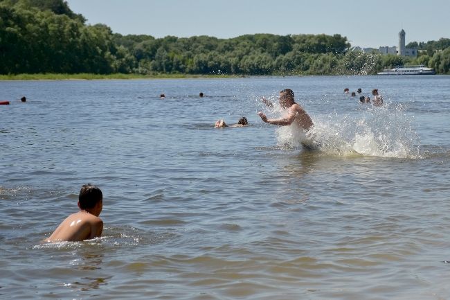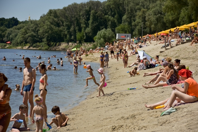 Міський пляж “Золотий берег” був сьогодні заповнений людьми вщерть, люди йшли пішки, їхали на авто і велосипедах. Навіть концертна програма в Міському саду не зупинила (там залишалися одиниці) — всі пішли на річку, поближче до води і прохолоди.