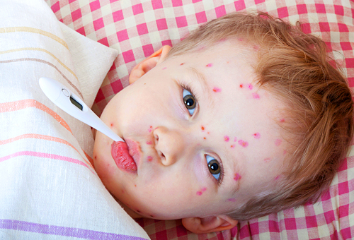 Про що мова? Якщо оглянути горло, воно буде усіяне дрібними білувато-блакитними плямами, схожими на розсипану манну крупу (названі на честь учених-дослідників Ніла Флатова та Генрі Копліка) На тілі висип проявляється також особливо, згори донизу поетапно: спочатку голова та шия, потім тулуб, руки і ноги вкриваються плоскими червоними плямами з горбинкою (папулою), що не сходять шість днів Поки «опускається» висип, посилюється інтоксикація організму й підвищується температура до 40-41 градусів.