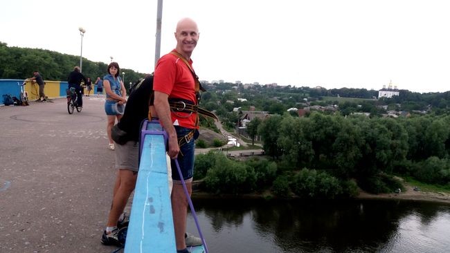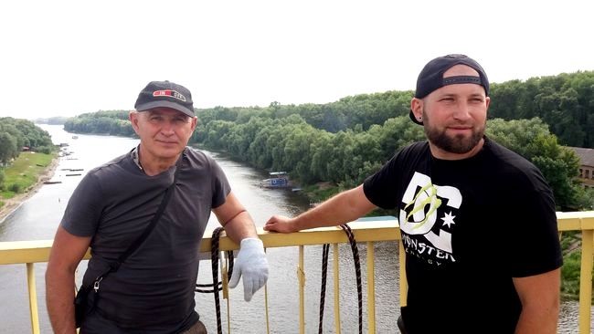 Итак, сегодня на мосту - известные уже многим жителям города Александр Михайлов (31 год) и Анатолий Федорович Антишко (60 лет). Именно, они являются организаторами и активными участниками не только роупджампинга, но и других видов экстремального отдыха, которые планирует и осуществляет Черниговский экстрим клуб «SemargL» https://www.facebook.com/semarglextreme/.