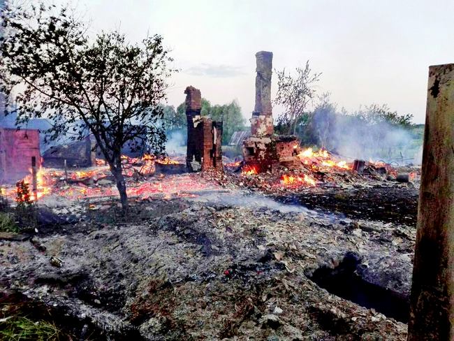 - В ту ночь был сильный ветер. Огонь с дома Кручко перекинулся на дом и хозпостройки Евдокии Стебы и еще на один нежилой дом. Евдокия Сергеевна зимовала удочери, на лето вернулась домой. Теперь в свои 77 лет осталась практически без ничего. Люди успели вытащить из хлева ее поросенка, из пылающего дома вынесли диван, стол, постельное белье. Остальное нажитое уничтожено. От дома Евдокии Сергеевны осталась одна печь с грубкой. Племянник Олег поселил ее в соседний со своим пустующий дом (в селе таких - 90 процентов).