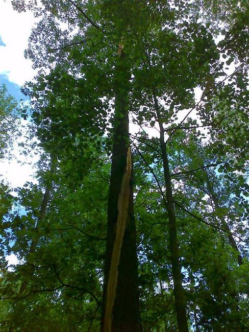 Фото ольхи черной, которую разряд молнии пронзил по спирали, в соцсеть выложил 36-летний Вячеслав Коцегуба из Перелюба Корюковского района.