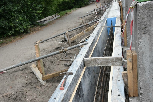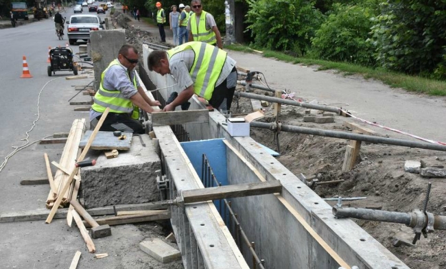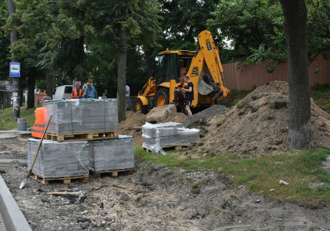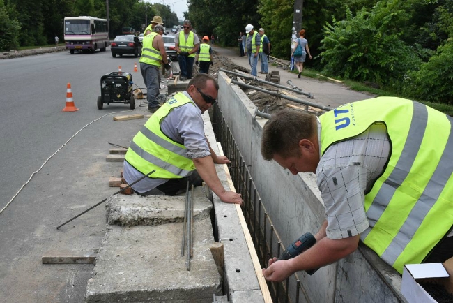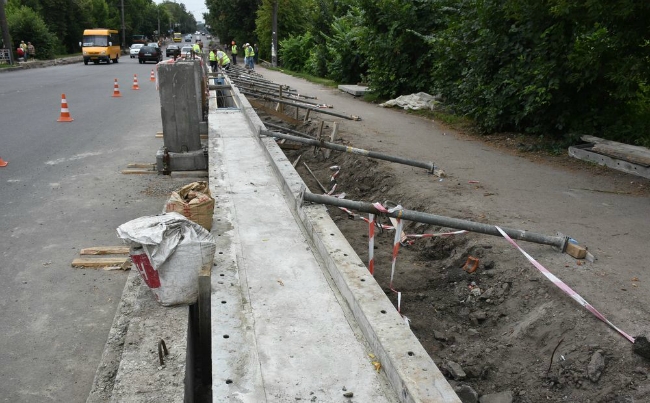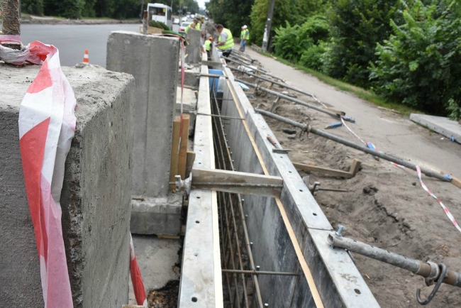 На ділянці від вул. Мартина Небаби до колегіуму № 11 з 30 червня ведуться роботи по облаштуванню майданчиків для зупинок громадського транспорту та бетонуванню підпірної стінки.