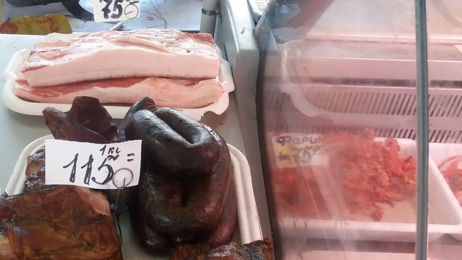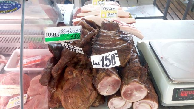 Мясной павильон здесь тоже всегда чист и ухожен, в холодильных витринах всегда аккуратная выкладка свежего мяса, сала и копченостей домашнего производства. В павильоне немноголюдно, но покупатели есть.