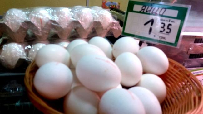 Яйца куриные в одном из павильонов - по цене 13.50 гривен за десяток. Домашние яйца по 20 гривен за десяток.