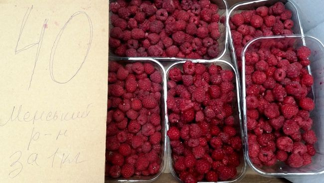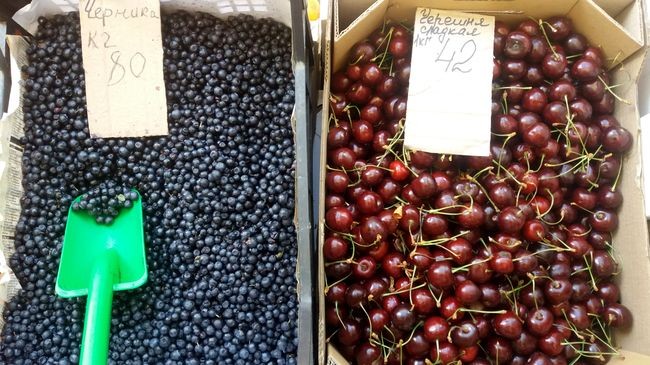 На фруктово-овощных раскладках – фрукты и овощи на любой вкус. Появились в продаже херсонские сливы, дыни и виноград. Конец июня-начало июля – самое время для сбора малины и черники, которую привозят на реализацию в Чернигов жители из сел Черниговского района. Цена на чернику, как рассказала продавец, зависит от ее свежести и влажности, и колеблется от 65 до 80 гривен за кг. При выборе черники следует обратить внимание на сизый налет. Если он есть, то можно быть уверенным – такая ягода недавно сорвана и не была перемешана в разных емкостях. Коме этого, она должна быть однородного темного цвета, сухая, с ровной поверхностью.