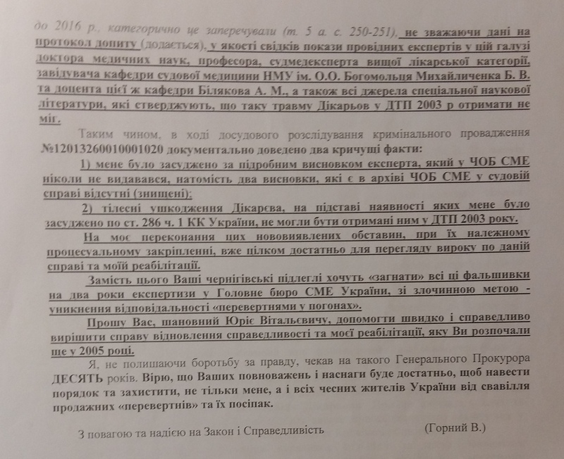 Странички из письма-обращения к Генпрокурору Юрию Луценко от Горного В.В.