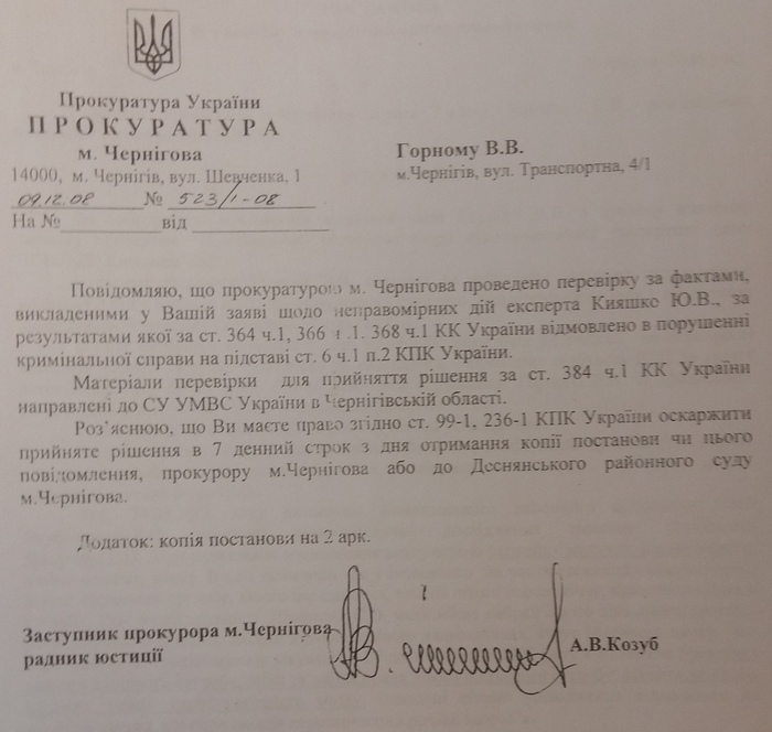 Дело №03/04726: инженер-геолог против конотопского миллионера и черниговской прокуратуры