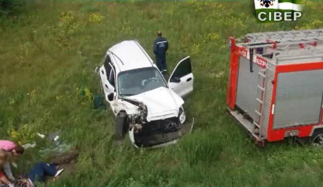 Загинула пасажирка, дружина водія, 56-річна Ірина Жаркова. Водій, підполковник, завідувач складу ремонту озброєння військової частини, 56-річний Андрій Жарков доправлений у Ніжинську міську лікарню. У нього травмовані хребет, голова, з неї зліва знесло шкіру з волоссям.