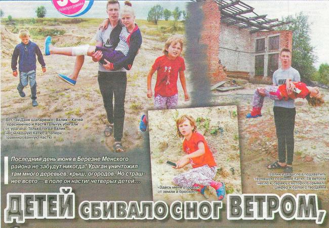 Последний день июня в Березне Менского района не забудут никогда! Ураган уничтожил там много деревьев, крыш, огородов. Но страшнее всего - в поле он настиг четверых детей...