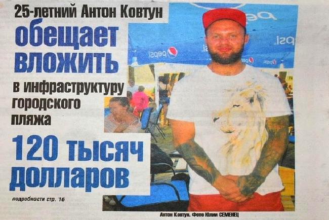 Назва статті - «25-летний Антон Ковтун обещает вложить в инфраструктуру городского пляжа 120 тысяч долларов».