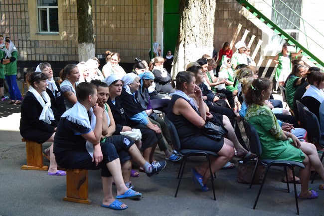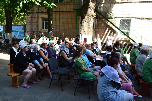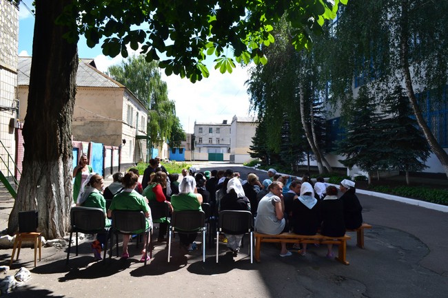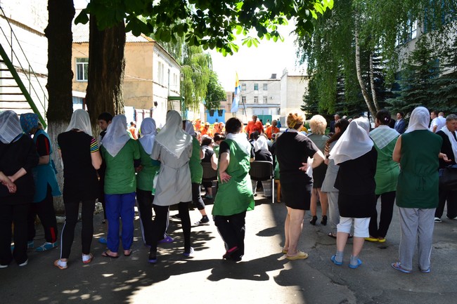 10 июля наш корреспондент побывал на необычном мероприятии в женской исправительной колонии №44. Тюремное учреждение, где на сегодняшний день содержится 212 женщин, посетил с визитом известный 47-летний украинский бизнесмен и продюсер Тимофей Нагорный, первый муж Олимпийской чемпионки по спортивной гимнастике Лилии Подкопаевой. С собой Нагорный привез команду пенсионерок из ОО «Федерации ходьбы Александра Шимко» и 75-летнего Михаила Моргулиса - президента «Фонда Духовная дипломатия». Моргулис также является почетным консулом Беларуси в американском штате Флорида. После проповеди и зарядки, для создания праздничного настроения среди заключенных, спела несколько песен 36-летняя артистка Наталия Валевская.