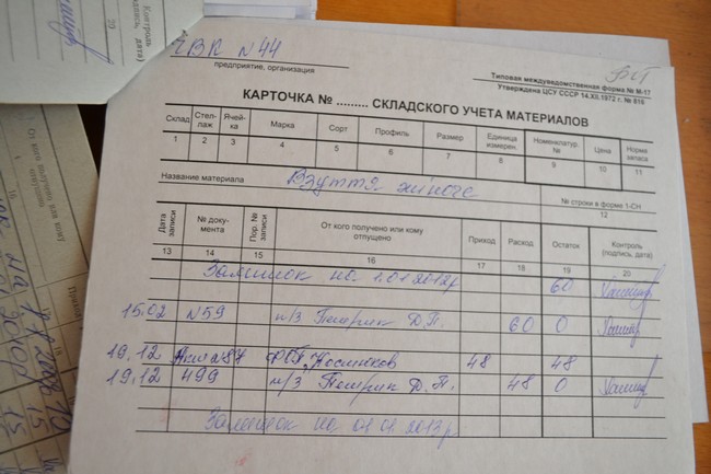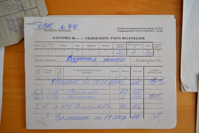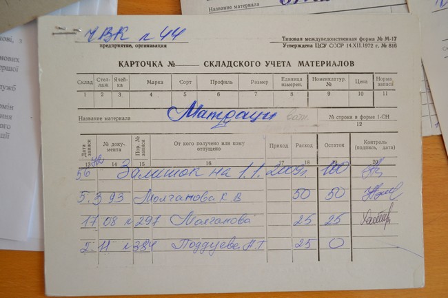 Карты учета, в которых отображено количество обуви, матрацев, с указанием дат и кол-ва остатков