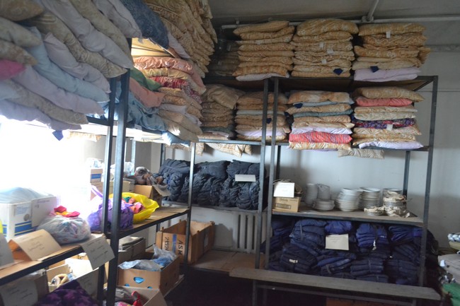 Далее Тамара Валерьевна провела нас на склад, где хранятся вещи заключенных и секонд-хенд, а также склад с фуфайками, тапочками и ночнушками.