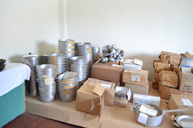 Вещи, предназначенные для распределения между заключенными, в том числе и посуда для столовой. Скороводки на фото - закупались10 лет назад.