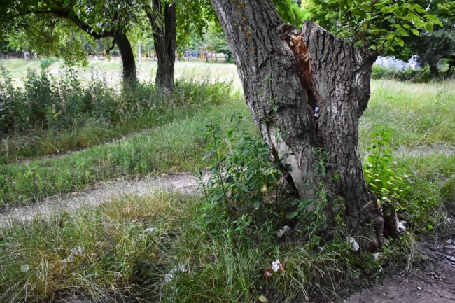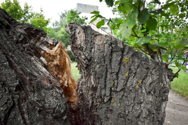 Пошкоджене дерево може впасти на людей. Комунальники кажуть: "Воно не наше"...