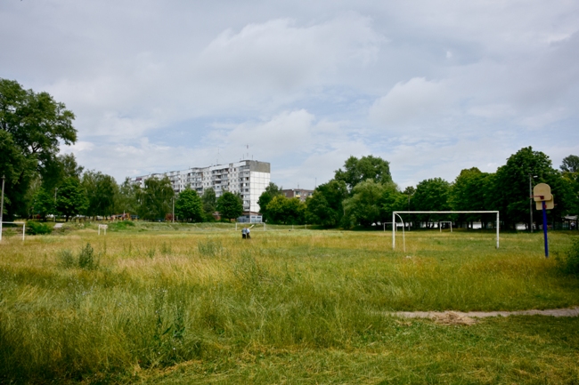 Що ж стосується вказаної території стадіону і навколо нього, за словами працівниць дитячого садка, то зараз вона фактично нічийна. Раніше стадіон належав “ЧеЗаРі”, але тепер чий — невідомо. Його ніхто не косить, не прибирає, він повністю заріс травою, у навчальний час на стадіоні грають учні з сусідньої 30-ї школи. А от прибирати територію вздовж стежки біля нього доводиться працівникам садочка, бо все сміття яке там викидають, вітром все одно несе на територію школи.