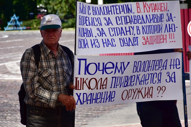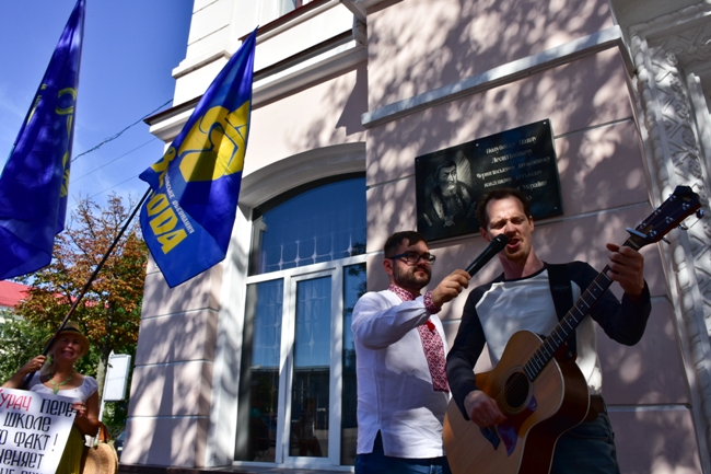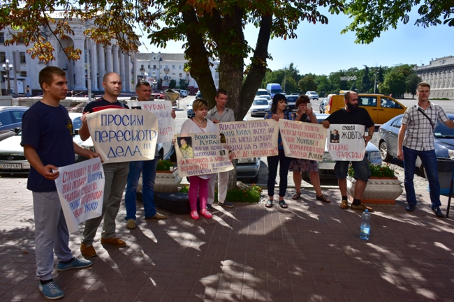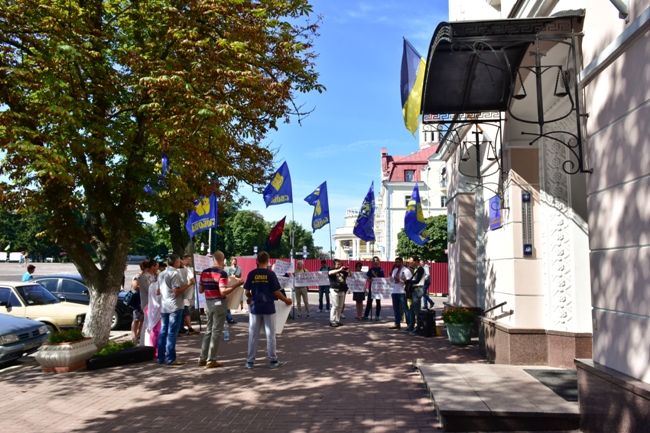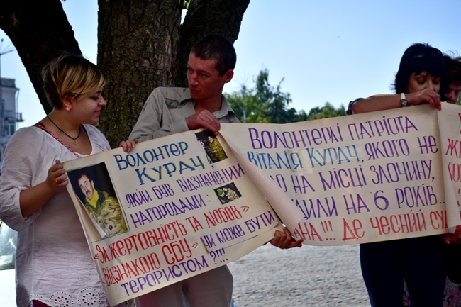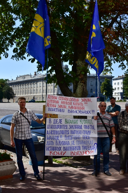 Під апеляційним судом сьогодні відбувся міні-концерт лідера гурту «Тінь сонця» Сергія Василюка, який супроводжувався акцією на підтримку волонтера з с. Ріпки Віталія Курача. Активісти вийшли з плакатами, в яких просили справедливого рішення суду, вказували, що Курач справжній патріот України, звинувачували в корупції на суддю Жовтка, який розглядав цю справу і просили її перегляду.