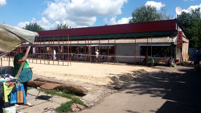 А войдя на официальный рынок, мы были приятно удивлены, увидев, что начато благоустройство не очень уютного и чистого, судя по прошлым репортажам, рынка, и строительство новых павильонов. Торговцы сообщили, что целый ряд будет предназначен для торгующих «с земли» тем, что они вырастили в своих садах и участках, а также для сельских жителей, кто привозит на реализацию домашнее молоко, сметану, творог, яйца.