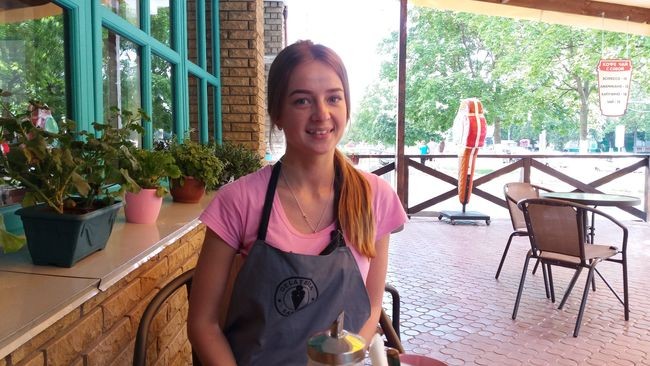 Полакомившись напоследок мороженым, мы попросили Даниила пригласить администратора или управляющего. Из зала кафе вышла милая, улыбающаяся, приветливая девушка и представилась администратором-бариста.