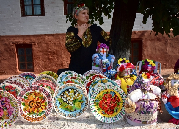 Тут же були і виставки майстрів, де можна було купити майже все - сувеніри, одяг, прикраси, посуд, картини і ще безліч різноманітних речей. У дівчини Олени, яка приїхала на фестиваль з Конотопа, можна було повчитись гончарній майстерності, ліпити з глини посуд. Ірина Серга, художниця з Конотопа, поряд продавала дивовижні декоративні тарілки і ляльки-мотанки в українському одязі. Навпроти них неабиякий ажіотаж викликали солом'яні брилі, каелюхи та сувеніри. І це лише в одному місці, а подібних рядів з товарами - декілька.