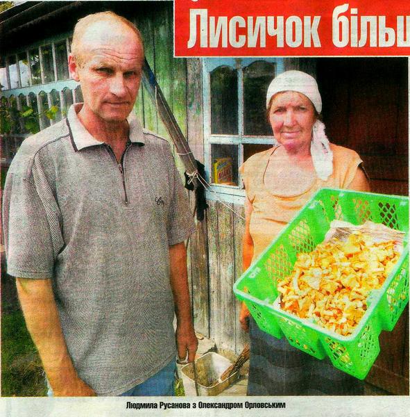 — Вийшов о 8 ранку, походив до обіду. Перебрав, трохи почистив, приніс. Вчора теж ходив у ліс. Після дощу трохи е, — розказує Олександр і передає Людмилі Іванівні целофановий пакет з грибами. Сусідка забирає, кладе на ваги, потім пересипає в ящик. В ящику здаватиме приймальниці з Олександрівки Ріпкинського району. Куди гриби підуть далі, не цікавилась. Віддає Орловському зароблені 63 гривні. І чоловік, задоволений, іде собі з двору.