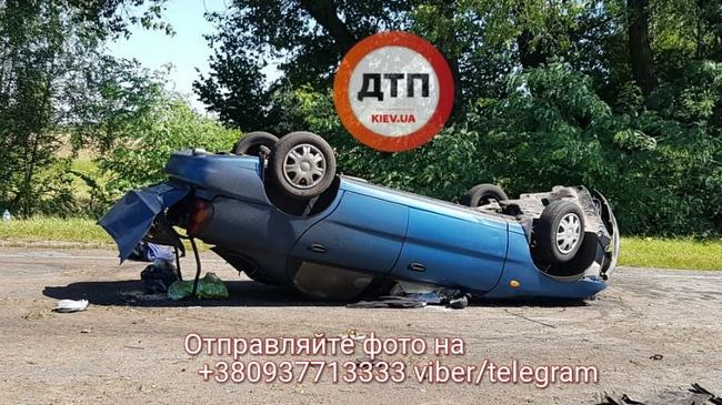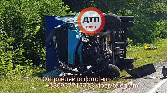 На Чернігівській трасі під Києвом автомобіль з невідомих причин вилетів на зустрічну смугу і врізався в газель. Машина перекинулася від удару, двоє пасажирів загинули на місці.