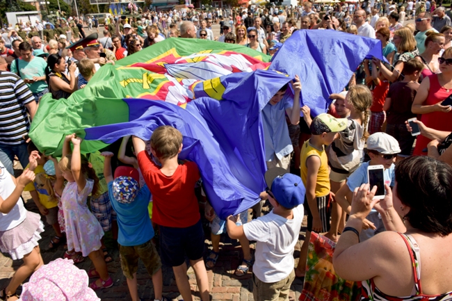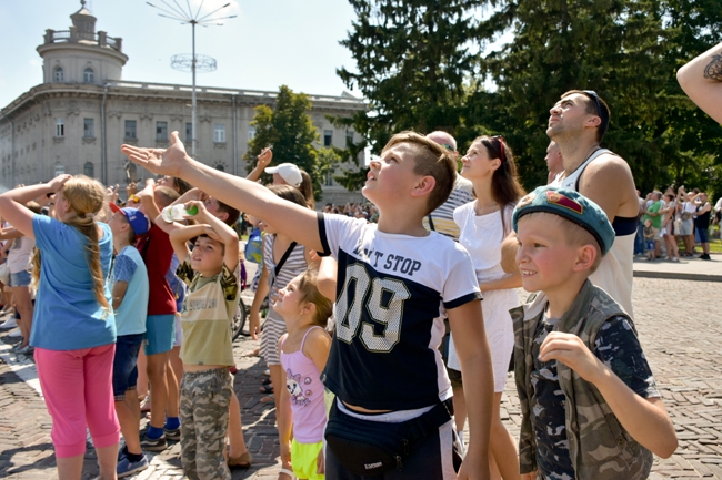Подивитися на таке видовище, незважаючи на спеку, прийшло близько тисячі глядачів. Але особливо раділи від побаченого діти, які після приземлення парашутистів, відразу кинулися до них фотографуватися.