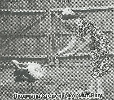 Кормили аиста сначала измельченным яйцом и размоченным белым хлебом. Ел, но после того как попробовал рыбу, от этой еды стал отказываться. Подружился Яша с четырехлетним охранником двора — немецкой овчаркой Лордом. Людмила рассказала, что часто лежат рядом, а однажды Лорд засунул морду под птичье крыло, так и дремали вдвоем.