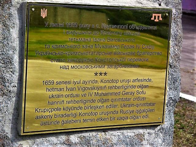 26 июля в Крупичполе Ичнянского района, как и в далеком 1659 году, собрались представители двух народов — украинцы и крымские татары. В честь братских отношений они торжественно открыли памятный камень — первый памятник украинско-татарской дружбы на территории материковой Украины.