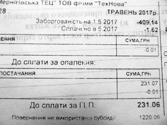 Чернігівка Галина Юдицька, яка щомісяця сплачувала по квитанціях за опалення та гаряче водопостачання, в червні отримала чергову квитанцію від КЕП «Чернігівська ТЕЦ» ТОВ фірми «ТехНова» і не повірила своїм очам. У квитанції навпроти нового рядка «повернення невикористаної субсидії» стояла чимала сума – 1220 гривень.