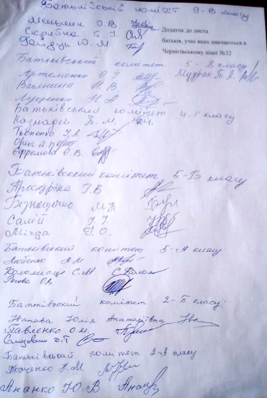 Несмотря на обнародованные аудиозаписи с нецензурной бранью, родители учеников лицея №32 собрали подписи в поддержку нынешнего директора. Марина Габелева, чья дочь ходит в данную школу, одна из инициаторов подписей. Она считает, что в последнее время СМИ ополчились против Людмилы Васильевны, устраивают ей травлю, и не публикуют мнение родителей. В качестве доказательств демонстрирует собранные подписи, акцентируя внимание, что у нее на руках еще не все списки: