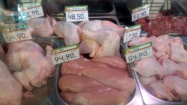 Цены на заводское куриное филе растут каждую неделю на 3 гривны: в начале июня оно стоило 76 гривен, 1 июля - 85.50, потом – 88,90, в прошлое воскресенье - 91, 90, а сегодня – 94,90! В прошлое воскресенье в Масанах окорочка стоили 63.90, сегодня здесь – 64.90 грн. А обычные куриные крылышки две недели назад стоили 51,50 гривен, в прошлое воскресенье - 56,90, а в это – уже на 1 гривну дороже. Другие части кур также подорожали на 1 гривну.