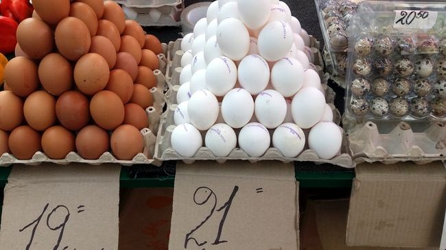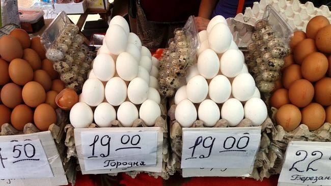 Куриные яйца, привезенные из села Косовщина Сумской области и Городни, можно купить по цене от 17.50 до 22 грн. за десяток.